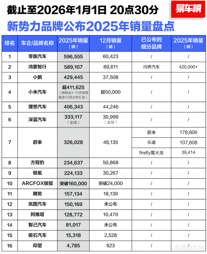 机构给出的数据显示,2025年新势力品牌销量前三的品牌分别为零跑汽车、鸿蒙智行、小米汽车(12月份交付量超5万正规合法的股票配资平台,加起来一定比小鹏汽车不到43万的年销量高);小米在2024年才推出第一款车型,第二年就能进入新势力前三,发展速度确实惊人。