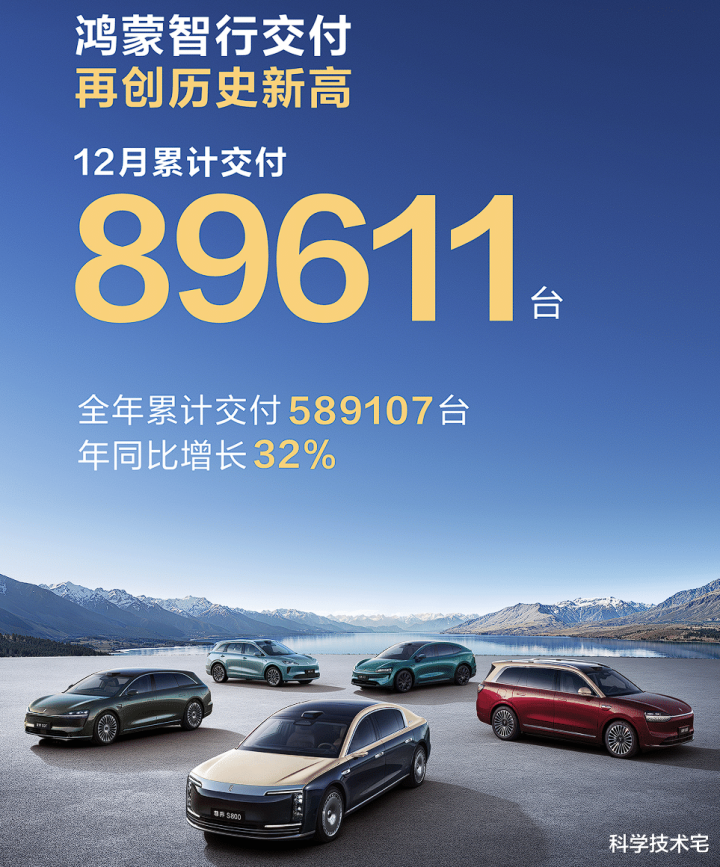 另外,鸿蒙智行去年给自己定的目标是100万辆,但是去年只交付了58.9万辆,距离目标还差很多;但是从数据来看,鸿蒙智行最后一个月的交付量接近九万,如果今年每一个月都能按照这个交付量的话,鸿蒙智行还是有希望完成100万目标的。